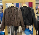 Укороченный прямой однобортный жакет из эко-кожи