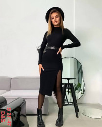 Изящное повседневное платье-лапша длиною ниже колен с глубоким разрезом на бедре отлично подчеркнет достоинства фигуры