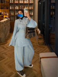 Нежный костюм из 100% льна — идеальный баланс стиля и комфорта. Лаконичный крой с акцентом на талии подчёркивает силуэт, а натуральная ткань дарит лёгкость и дыхание коже.