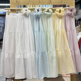 Состоят из нескольких ярусов, что придает им объем и женственность. Эластичный пояс обеспечивает удобную посадку. Каждая юбка дополнена милым аксессуаром — тканевой резинкой для волос в тон.