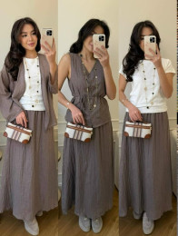 Жилет, топ и юбка идеально сочетаются между собой, создавая нежный и современный образ.
